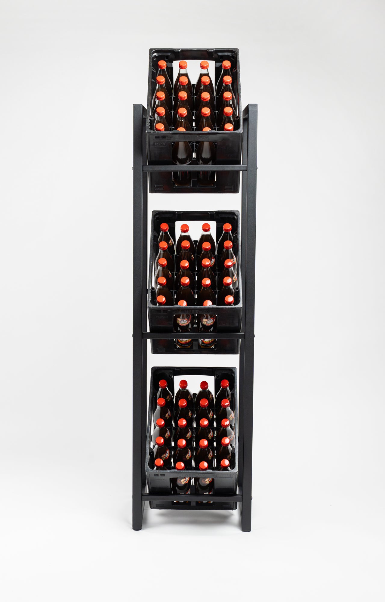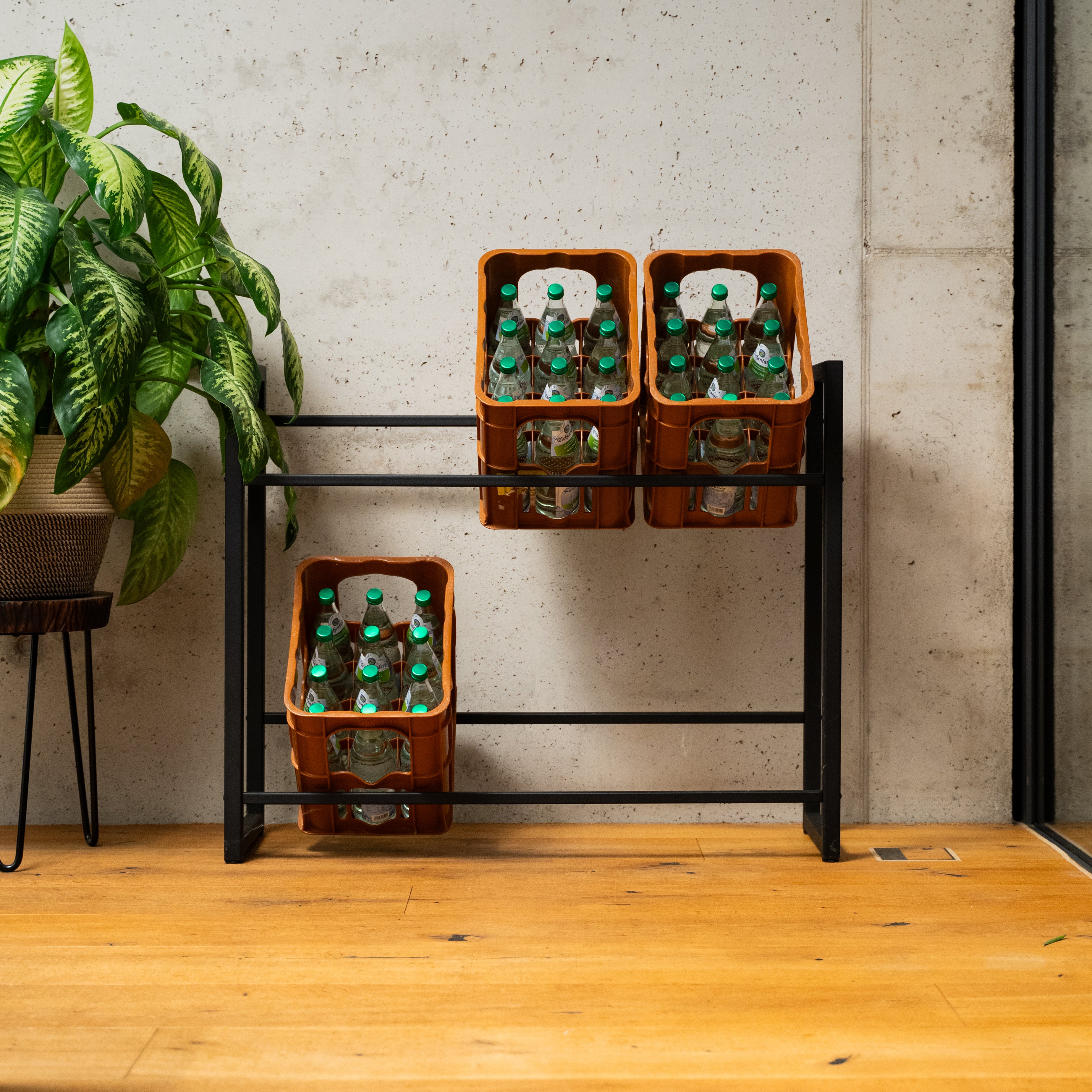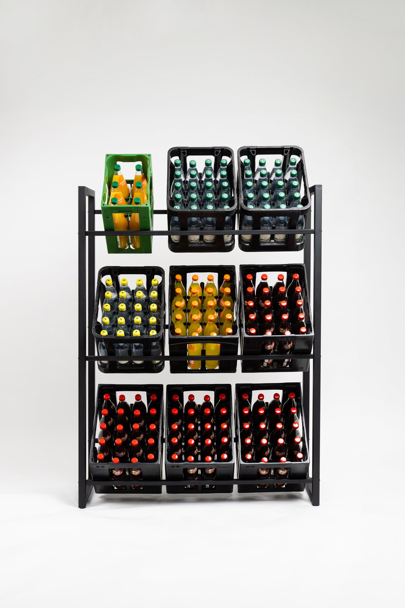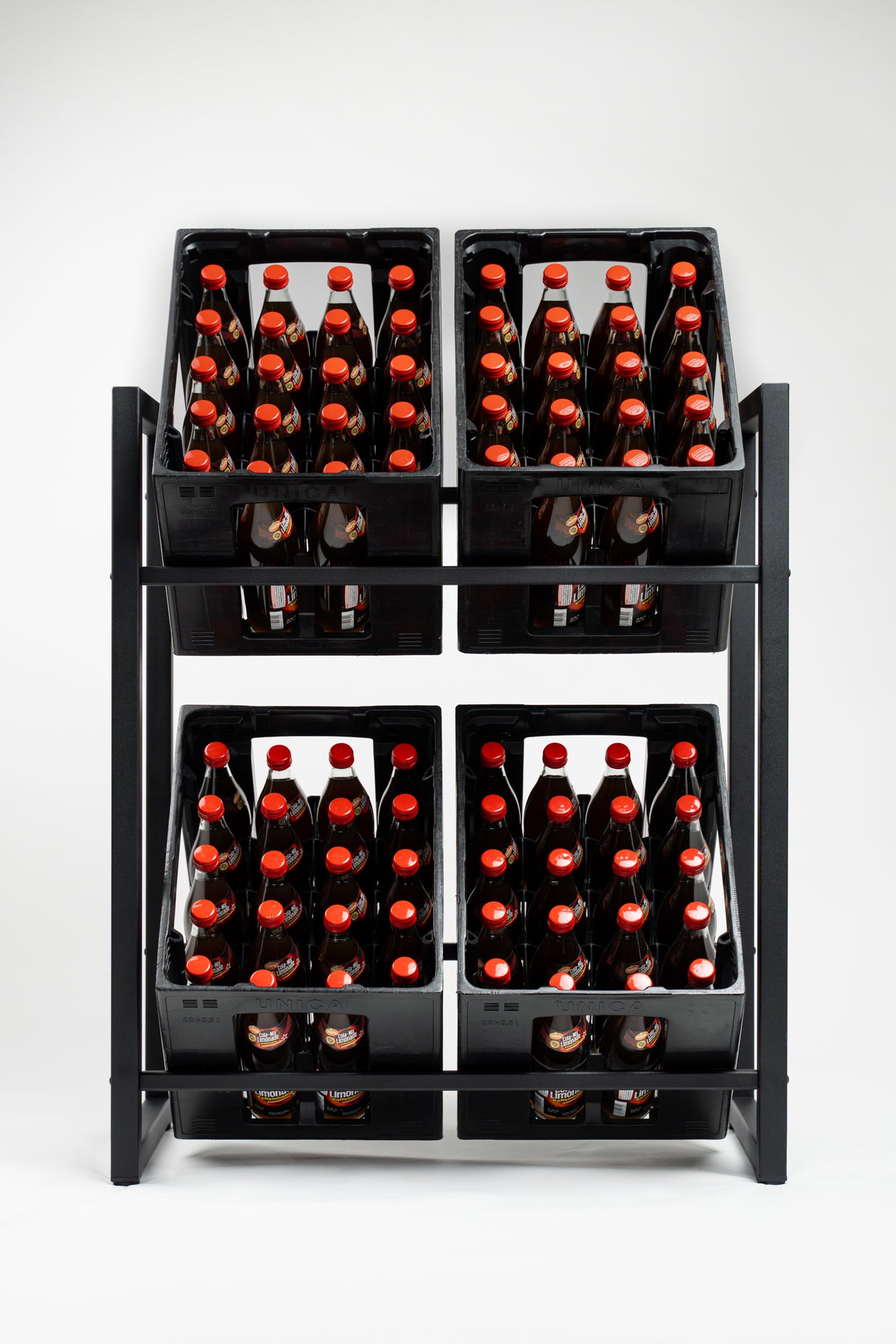 Unser Getränkekistenregal wird wie alle unsere Produkte in Handarbeit hergestellt und überzeugt durch seine gute und massive Verarbeitung. Die sauber geschweißten und pulverbeschichteten Teile verleihen dem Regal eine hochwertige Optik und Haptik. Zusätzlich ist das Regal mit einer Anti-Rutsch-Pulverbeschichtung veredelt, die nicht nur für eine ansprechende Oberfläche sorgt, sondern auch die Sicherheit erhöht. Dank des freistehenden Designs bietet das Regal Flexibilität bei der Platzierung und passt sich deinen individuellen Bedürfnissen an.