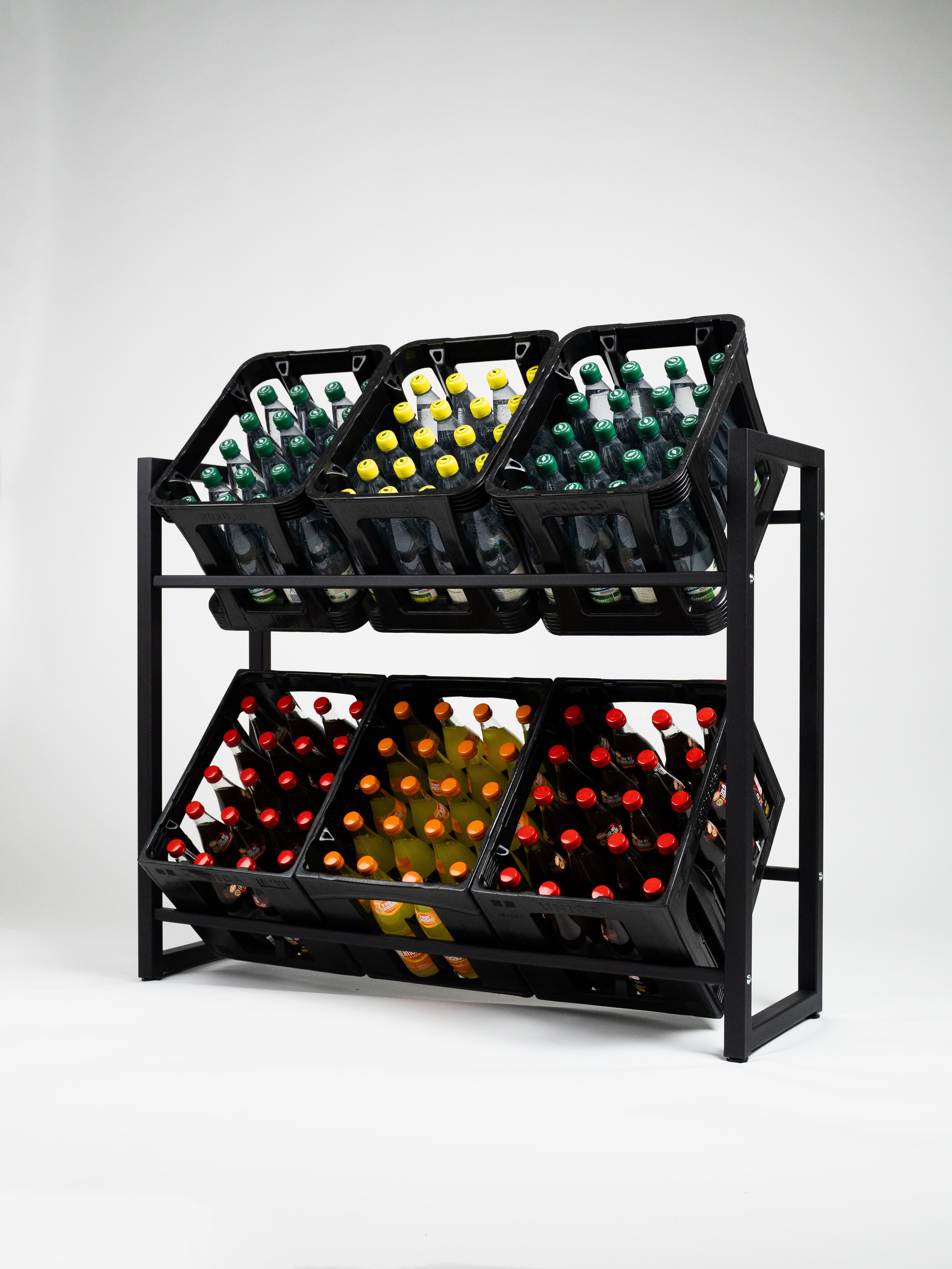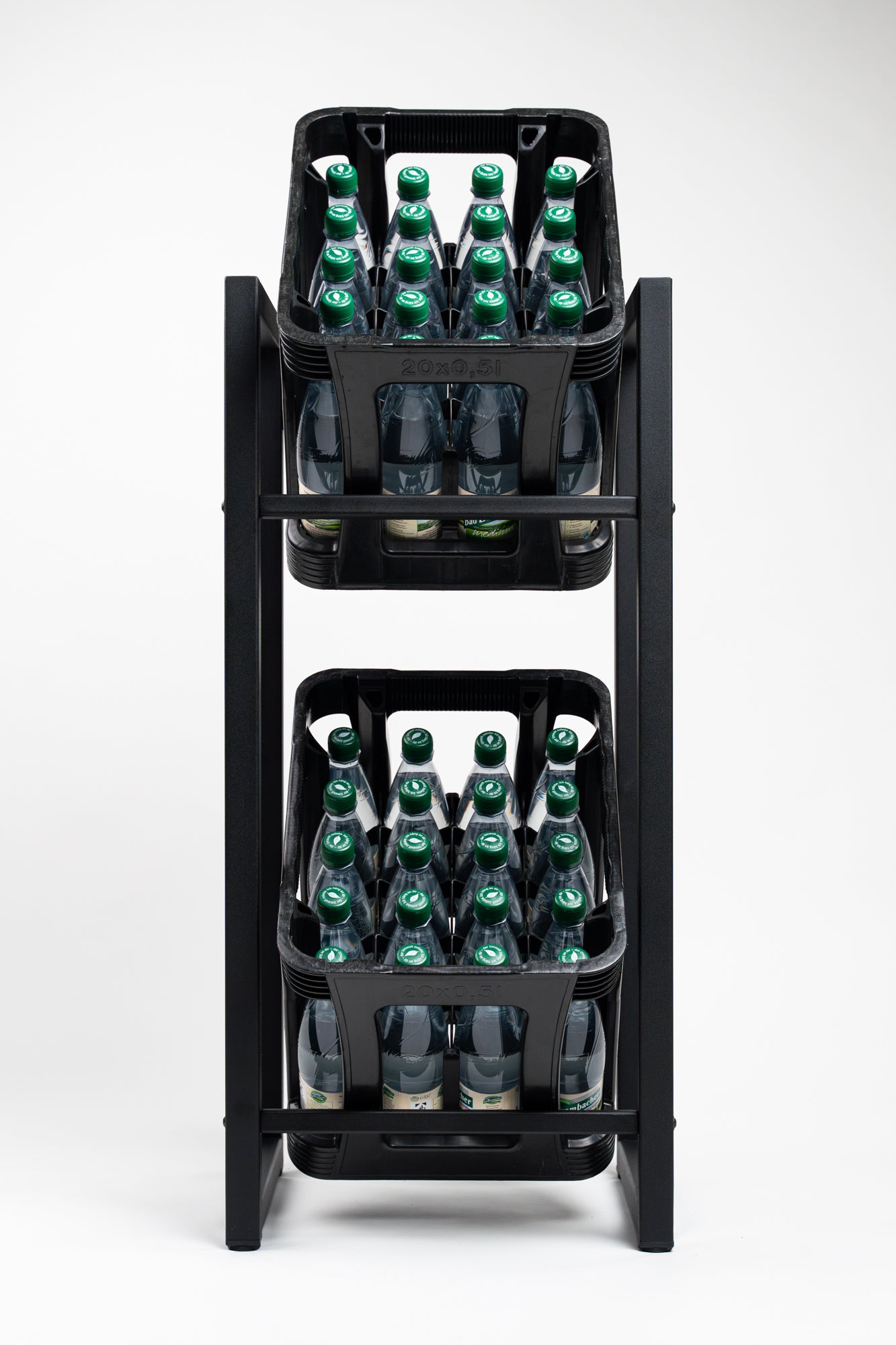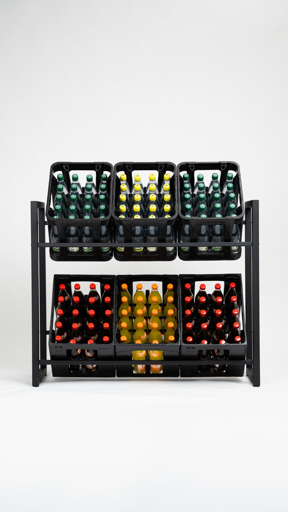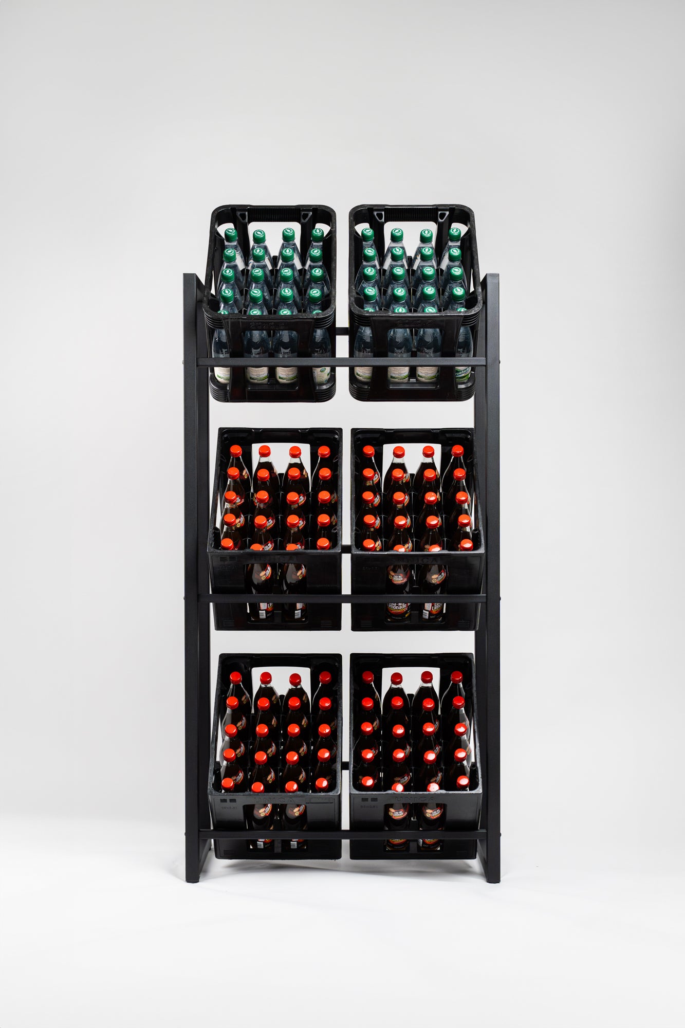 Mit einer Kapazität für bis zu sechs Getränkekästen bietet das Regal ausreichend Stauraum für den täglichen Bedarf. Besonders viel Wert haben wir auf die Stabilität des Regals gelegt, weshalb es selbst in Härtetest bei bis zu 250kg (pro Ebene) problemlos standhält.