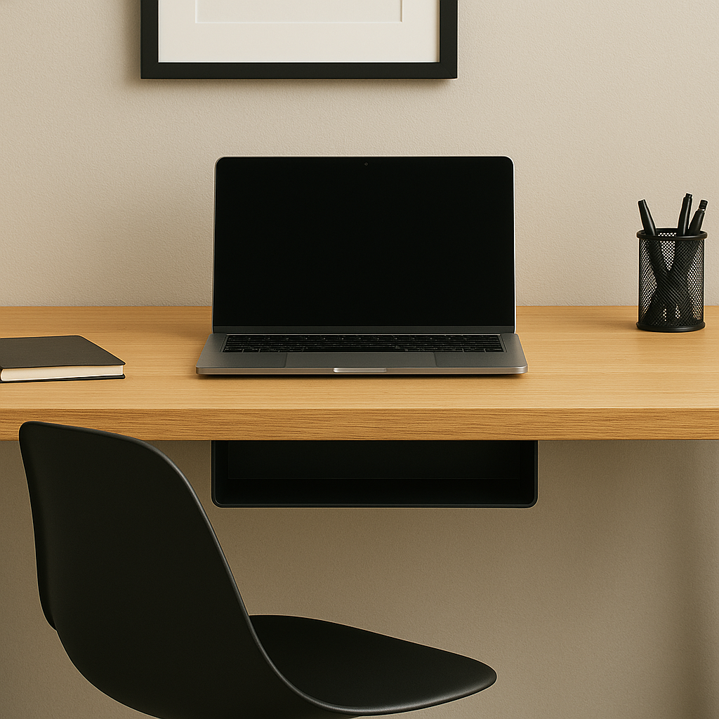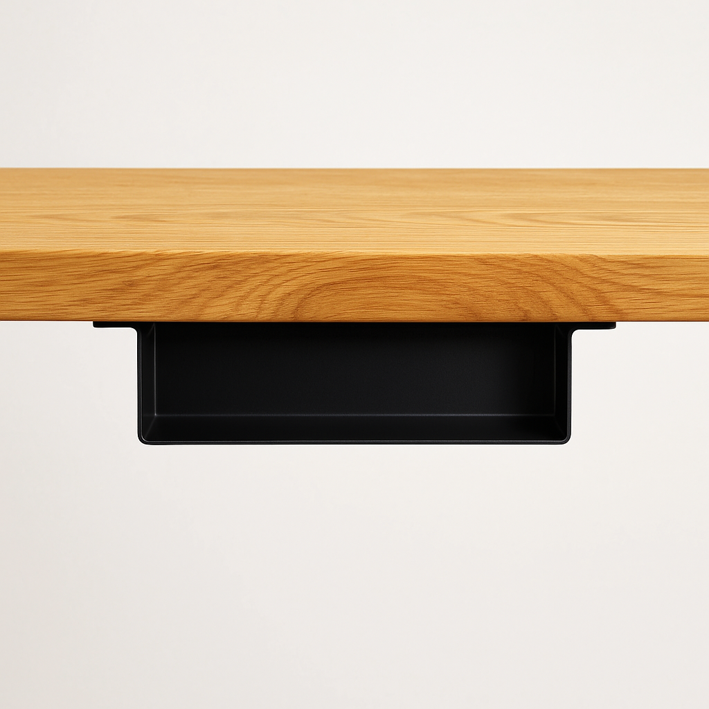 Unser Tischfach verbindet minimalistisches Design mit durchdachter Funktion – für Menschen, die Wert auf klare Linien und aufgeräumte Räume legen. Ob im Büro, auf dem Esstisch oder im Wohnbereich: Die offen gestaltete Front ermöglicht schnellen Zugriff auf das, was im Alltag zählt – Notizbuch, Stifte, Laptop, Besteck oder auch ein gutes Buch.